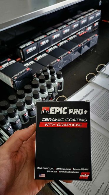 EPIC® Pro+ Ceramic Coating with Graphene is a specially formulated coating that offers a superior high-gloss finish, abrasion resistance, and enhanced UV protection. This special formulation, enhanced with graphene, bonds with the clear coat to create a high level of hydrophobicity that prevents dirt, water spots, and other contaminants from adhering to paint. When professionally installed, EPIC® Pro+ Ceramic Coating with Graphene will provide your vehicle the ultimate “wet” look and is backed by a 4 year/48,000-mile in house warranty.