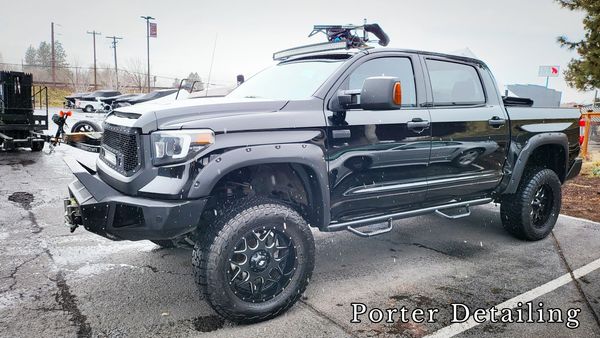 * Full Exterior Detail: 6 hrs+, The above steps include a polish and wax stage to enhance the paint and remove any contaminants such as swirls, oxidation, and waterspots. This step applies a hard orbital wax, along with UV protection, to all the trim. $575.00+ *Ceramic Coating: 15+ hours, we can coat the paint, windows, and even the rims for our longest-lasting protection. Ask for the price. *Interior: Front cab only and/or a complete interior cleaning. $255.00 / $340.00+