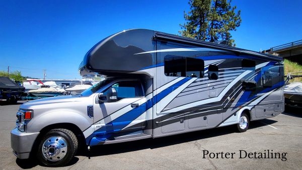 ( Starts at 13 hours and tops out at 20 hours) - This detail package includes all of the above work and also includes exterior oxidation removal and scratch removal approved at drop-off, including orbital applied wax to the exterior and details of all tower accessories (board racks, mirrors, accessories). Includes orbital wax on the trailer and polish to any aluminum tread.